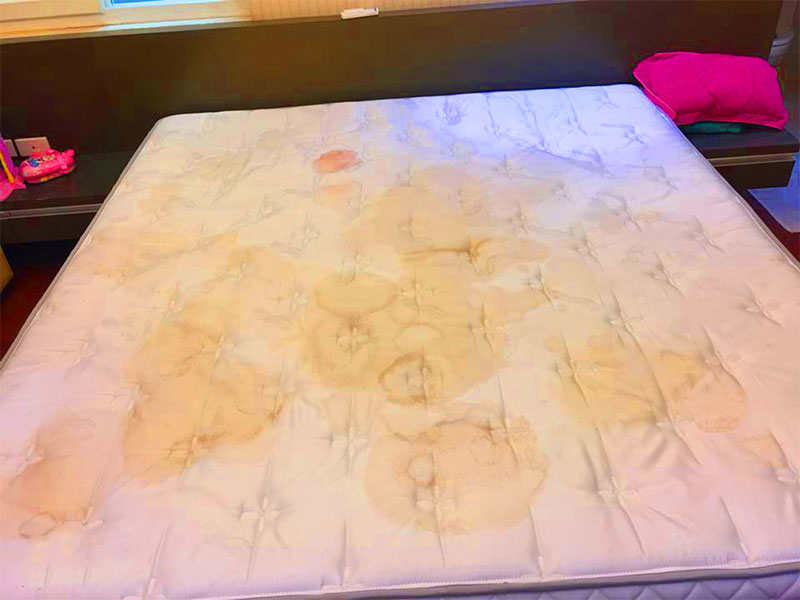 Ngoài mồ hôi và tế bào chết, nệm cũng có thể bị ố vàng do dính các chất lỏng như nước tiểu, thức ăn, đồ uống... Khi tiếp xúc với những chất này, bề mặt nệm sẽ nhanh chóng bị ố màu và phát triển vi khuẩn, nấm mốc.