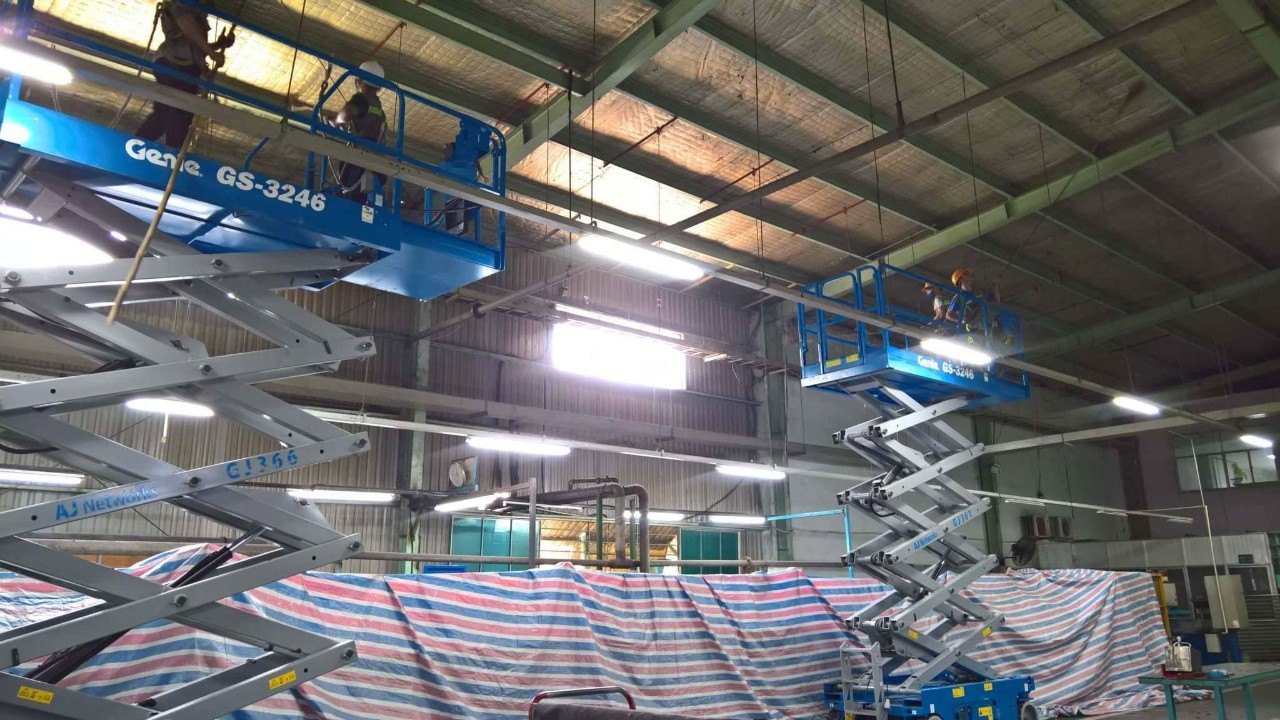 Bước 3: Sử dụng thiết bị chuyên dụng: cây quét telesco, xe nâng, giàn giáo