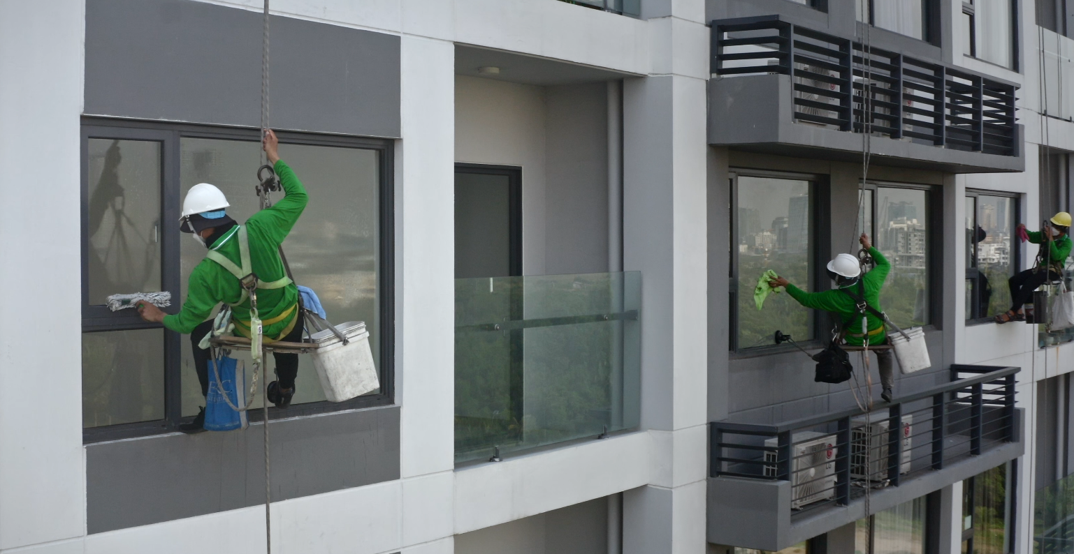 Vệ sinh kính mặt ngoài toà nhà cao tầng
